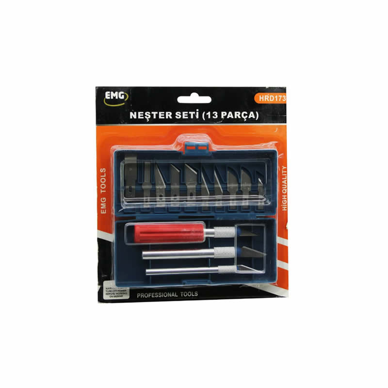 EMG Neşter Seti, kağıt kesiminden plastik şekillendirmeye kadar geniş bir yelpazede kullanılmak üzere optimize edilmiştir. Set içerisinde yer alan 10 farklı yedek uç (bıçak), dairesel kesimlerden düz kazımalara kadar her türlü ihtiyaca cevap verir. 3 farklı gövde (sap) seçeneği, hem kalem gibi tutulması gereken ince işlerde hem de daha fazla güç gerektiren kaba kesimlerde kullanıcıya konfor sunar. Manyetik şeritli özel saklama kutusu sayesinde uçlar dağılmaz ve keskinliklerini uzun süre korur.