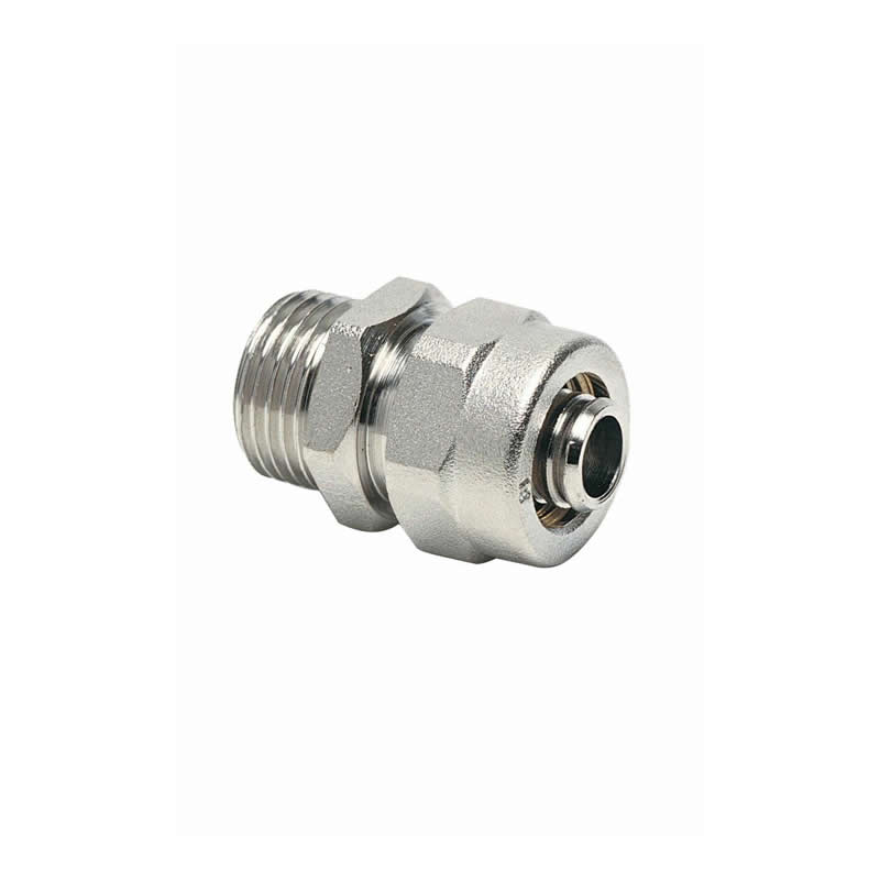 1/2" x 16 mm Pex Dış Dişli Rakor, mobil (yerden ısıtma) tesisat sistemlerinde ve Pex boru hatlarında, 16 mm çapındaki boruları 1/2" ölçüsündeki vanalara, kollektörlere veya diğer dişli ekipmanlara bağlamak için tasarlanmıştır. Birinci sınıf pirinç malzemeden üretilen bu rakor, yüksek sıcaklık ve basınç altında formunu koruyarak sızdırmazlık sağlar. Boruyu kavrayan özel sıkıştırma halkası (yüzük) sayesinde boru üzerinde tam hakimiyet kurar ve yüksek basınçlı sistemlerde bile güvenli bir bağlantı oluşturur.